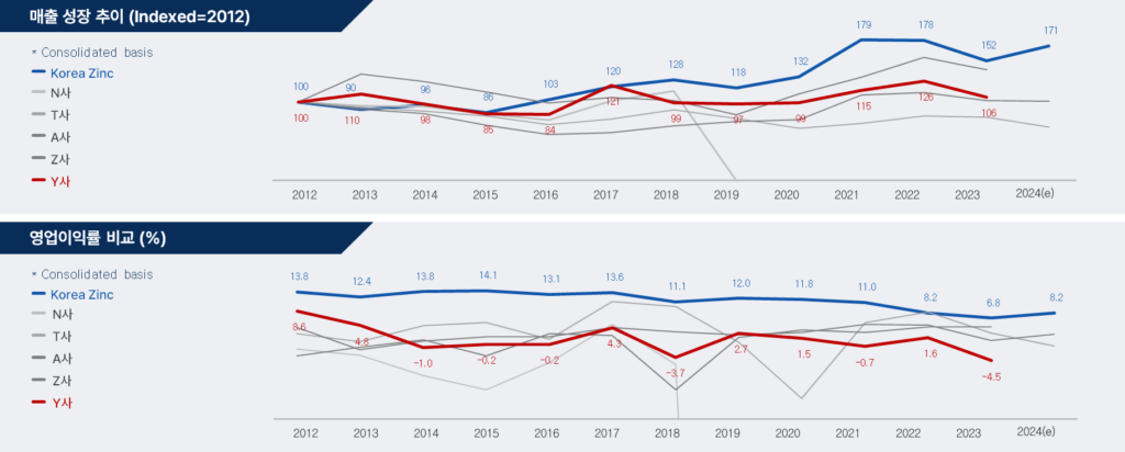 [Executive Summary] 최윤범 회장 취임 이후 고려아연의 실적이 악화되었다는 MBK와 영풍의 주장은 모두 거짓이며, 고려아연은 동종업계 유사기업 대비, 국내 Peer와 산업 지수 모두를 상회하는, 뛰어난 실적 및 경영성과를 입증해 오고 있습니다. MBK와 영풍은 줄곧 최윤범 회장이 고려아연 회장으로 취임한 이래, 경영실적이 악화되었다고 주장하며 이는 고려아연 거버넌스의 실패라고 평가하고 있습니다. 하지만 이는 잘못된 의혹 제기입니다. […]
